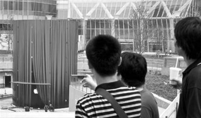 只不過揭開了紅色帷幕的一角,眾多“蘋果粉絲”已經(jīng)按耐不住激動的心情,紛紛實地圍觀這座神秘建筑。
