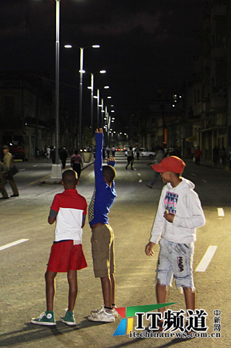 路燈點(diǎn)亮了,圍觀的人群歡呼起來,在現(xiàn)場圍觀的哈瓦那市民魯爾興奮地告訴記者,他就住在中央大道附近,這是他看到的最漂亮的也是最亮的一條馬路,真想不到他自己會成為享受中國高科技節(jié)能產(chǎn)品的第一批幸運(yùn)兒,因?yàn)樗约旱募揖驮隈R路邊上,他天天晚上都可以享受這份樂趣。