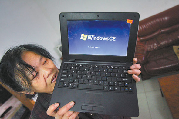 老兩口也不是很懂這個,直到晚上大兒子回家仔細檢查后才發(fā)現(xiàn),這所謂的超級上網(wǎng)本,只是一堆塑料簡易制品,跟小孩子的玩具沒兩樣。而且這臺電腦根本打不開,按了電源鈕后,屏幕上只出現(xiàn)“Windows CE”字樣,就無任何反應了。