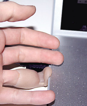 雖然不好看,但是杰里顯然十分喜歡這個(gè)手指,回家后他迫不及待地把這個(gè)U盤從無(wú)名指上拔下并插上電腦,給這個(gè)U盤下載并安裝了Billix,CouchDBX以及Ajatus等軟件,完畢后他只用輕輕一拔套上無(wú)名指就可以了。