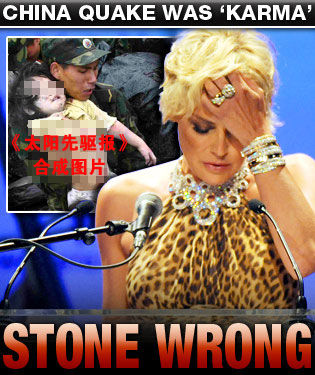 美國本土也對(duì)莎朗斯通表示憤慨。在美國的一些網(wǎng)站上,也有關(guān)于此事的報(bào)道,而且美國一些網(wǎng)友批判說,莎朗斯通年齡大了,名氣越來越小了,這樣不假思索的話從她嘴里出來,顯然是博人注意,丟人現(xiàn)眼。