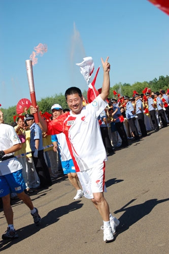 第三棒火炬手飛鶴乳業(yè)董事長冷友斌手持火炬