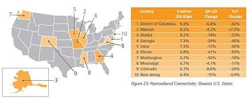 阿拉斯加州最慢,平均速度只有2,000kbps