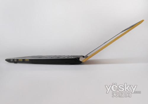 值得一提的是,同方鋒銳S30i的下沉式屏幕轉(zhuǎn)軸能夠提供高達(dá)140度的屏幕開闔角度,這在我們以往評測過的同類設(shè)計(jì)產(chǎn)品當(dāng)中并不多見,也使得鋒銳S30i能夠適合更多環(huán)境中的使用。