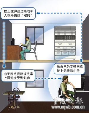 但家中產(chǎn)生的無(wú)線網(wǎng)絡(luò)信號(hào),往往樓上樓下都能收到,如果無(wú)線網(wǎng)絡(luò)沒(méi)設(shè)密碼,別人只要收到信號(hào)就能免費(fèi)使用,即“蹭網(wǎng)”。按重慶ADSL寬帶包月價(jià)80元計(jì)算,“蹭網(wǎng)”者一年可以省下近1000元。