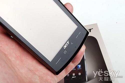 外觀上,ACER neotouch采用了傳統(tǒng)的直板造型設(shè)計(jì),配備了一塊3.8英寸WVGA的電阻式觸摸屏幕,分辨率達(dá)到了480x800像素,顯示效果清晰細(xì)膩。neotouch擁有117.5x63.5x12.85 毫米的三圍體積,重量131.5克,整機(jī)設(shè)計(jì)簡約時(shí)尚,握持手感非常不錯。