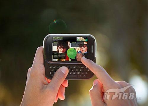 接下來介紹的微軟Kin Two在命名規(guī)則上與Kin One如出一轍,最初的產(chǎn)品代號(hào)為“Pure” 。從設(shè)計(jì)上看,該機(jī)采用的是側(cè)滑蓋造型,同樣擁有Qwerty全鍵盤,只不過全鍵盤配色由之前的白色改為了純黑色。由于體型的增大,該機(jī)的屏幕規(guī)格較Kin One相比也有所提升,裝配的是一塊3.4英寸WQVGA分辨率(320x480像素)的電容式觸摸屏,保留了多點(diǎn)觸控功能。