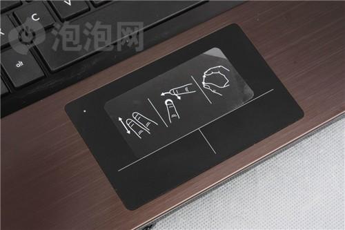 腕托使用了與機身頂蓋相同的材質(zhì),這樣做有三個優(yōu)點,首先提升了手感和堅固性,另外還在一定程度上保證了設(shè)計的整體感。本機觸控板設(shè)計頗有新意,遺憾的是在按壓左右鍵時整體略微下沉,定位精度中規(guī)中矩。