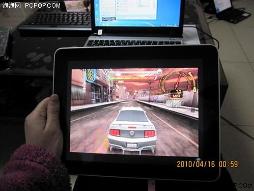 游戲,賽車,畫(huà)面很大也很清晰,但舉著10英寸大小iPad玩還有點(diǎn)動(dòng)作不靈活。