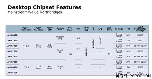 由上圖我們可以了解到:由于面向的處理器以及南橋不同所以它以不同頻率的形式出現(xiàn)了三個版本:785G代號為RS880,集成Radeon HD 4200 GPU;880G代號為RS880P,圖形設備ID為0x9715,集成Radeon HD 4250;890GX代號為RS880D,圖形設備ID為0x9714,集成Radeon HD4290。