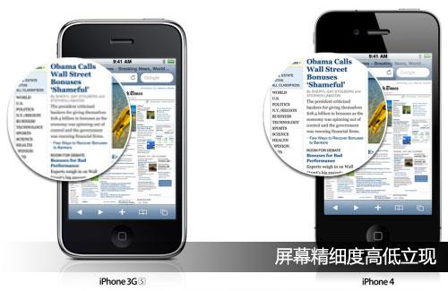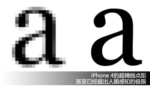 人眼所能分辨率最高PPi為300,這也就意味著iPhone4屏幕的細(xì)膩程度已經(jīng)超過(guò)了人眼的分辨范圍,這也是官方將其稱作“Retina Display”的原因。在Apple官網(wǎng),其給出了Retina Display的形象表示,3代與4代產(chǎn)品對(duì)比,顯示同一網(wǎng)頁(yè),用放大鏡觀察細(xì)節(jié),4代的明顯更清晰,畫(huà)面呈現(xiàn)出高度細(xì)膩,而3代機(jī)型則會(huì)出現(xiàn)鋸齒甚至馬賽克。