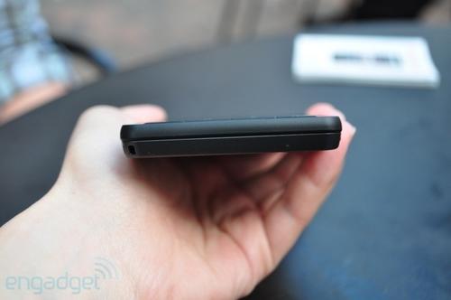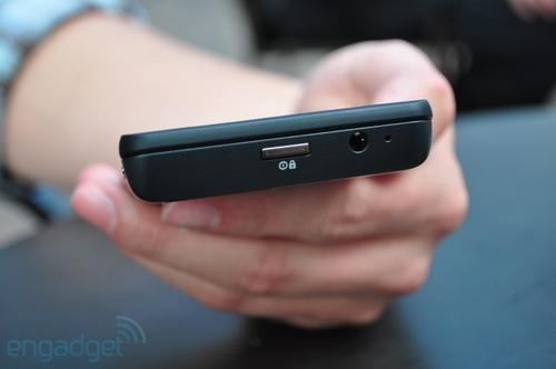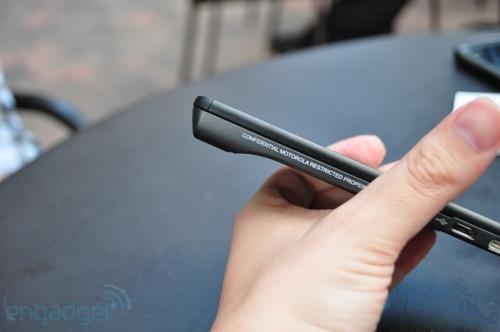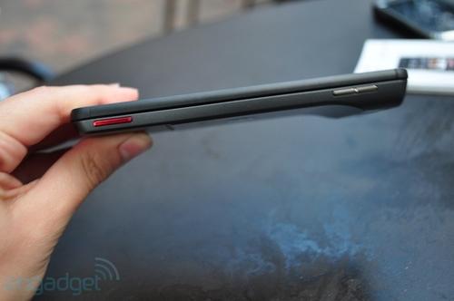 摩托羅拉Droid X的機(jī)身背部并非采用了和iPhone 4相同的平面式設(shè)計(jì),從這一角度我們可以很清楚的看到機(jī)頭部分明顯凸出,厚度比其它區(qū)域都要多一些。