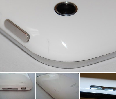 圖為:外殼出現(xiàn)龜裂的白色iPhone 3G