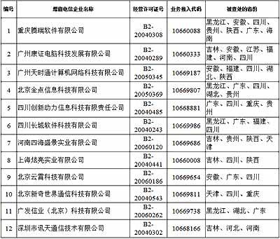 公告顯示,違規(guī)企業(yè)中12家跨地區(qū)經(jīng)營的增值電信企業(yè)被三個(gè)以上省(自治區(qū)、直轄市)通信管理局查處。