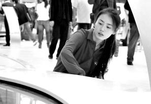 勞動讓紅衣MM在眾多車模中突圍而出。