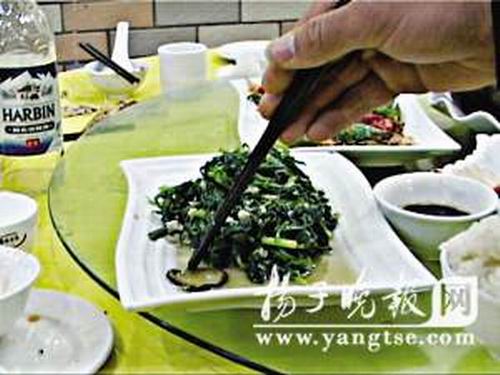 昨天傍晚,溫州人沙先生帶老鄉(xiāng)來到南京建康路附近一家飯店吃飯,飯吃到一半竟發(fā)現(xiàn)炒菠菜里有一條焦黑的蚯蚓,沙先生報(bào)了警。