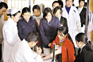 昨天上午,記者跟隨花都區(qū)新華鎮(zhèn)專門安排的醫(yī)生來到了花都區(qū)新華工業(yè)園區(qū)(見下圖)。在這里,聚集著花都區(qū)除獅嶺鎮(zhèn)以外最多的外來工群體。一到工廠,醫(yī)生免費看病的消息就傳遍了。選擇留下過年的外來工三五成群都涌了過來。
