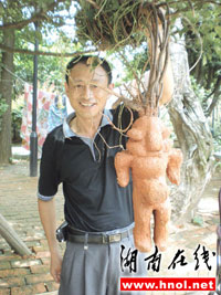王先生說,早上9時(shí)許,家門口兩個(gè)小伙子正提著一蔸“人”形植物在吆喝!拔腋u主討價(jià)還價(jià)后,只花了400元買下來了。”