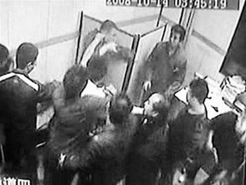 穿白衣男子沖了進來向醫(yī)生揮起拳頭