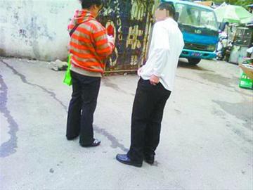隨后,立刻有兩個女子從一輛三輪車后面走了出來?雌渲幸晃煌道镅b錢的動作,像是剛進行完交易。揣錢的那位還一直向給錢的女子說:“你就再多給兩塊錢唄! ”而給錢的女子卻語氣十分堅決:“不行,不換就算了,就這價! ”見到記者后,給錢的女子將記者一把拽到三輪車后。