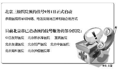 按衛(wèi)生部要求,全國三級醫(yī)院10月起推行預(yù)約掛號,北京在全國率先試點(diǎn)。