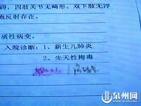 “男嬰的梅毒是從母體傳來(lái)的!被莅部h醫(yī)院兒科陳醫(yī)生介紹,小偉不但患有新生兒肺炎,而且梅毒疾病比較嚴(yán)重,需要進(jìn)一步觀察治療。病歷上記載的“RPR”是梅毒的英文縮寫(xiě),而“1∶2陽(yáng)性”則說(shuō)明小偉患有梅毒。小偉的生母沒(méi)有積極為小偉治病,而是選擇將孩子“高價(jià)出售”。