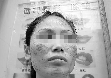 6月10日晚,喜歡美容的李信瓊在金花橋金興南路97號一家美容店內,做了一次所謂的“光子祛紅血絲”。但半個小時的功夫,她那張曾引以為豪的白凈面容,竟布滿了一條一條令人觸目驚心的“燒痕”。昨日,在屈辱和絕望的雙重打擊下,李信瓊再次來到店內討要說法……