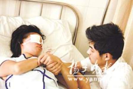 在醫(yī)院眼科搶救病房里,記者昨天下午見到雙眼蒙著紗布、躺在病床上的小雨,她雙手拉住坐在一旁的丈夫不愿松開。據(jù)小雨的丈夫梁偉介紹,他與妻子是在常州打工時認識的,兩人于2007年年底結(jié)婚,在結(jié)婚前,妻子就知道他有一個患精神分裂癥的弟弟。