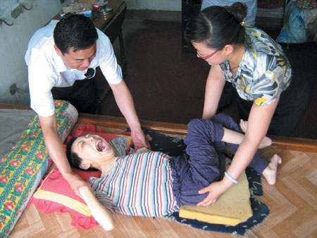 今年52歲的董英杰是辛寨子街道砬子山村一名普通農(nóng)村婦女。當(dāng)年,董英杰懷上了和丈夫的第二個(gè)女兒時(shí),因?yàn)楫?dāng)時(shí)認(rèn)知有限,生產(chǎn)前董英杰沒有去醫(yī)院檢查,沒想到,厄運(yùn)降臨到了這個(gè)農(nóng)村家庭,穎欣都6個(gè)月大了,但仍不會(huì)張手要求抱抱,董英杰夫婦越想越不對(duì)勁,女兒三歲的時(shí)候,他們帶著她到北京去檢查,結(jié)果是女兒患上了嚴(yán)重的腦癱,不但四肢、身體無法行動(dòng),連智力都是殘疾的。