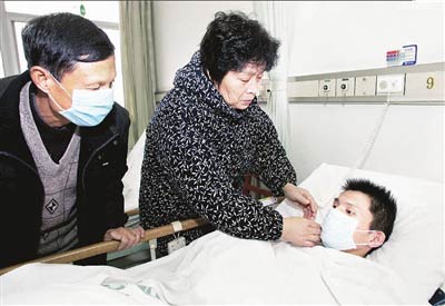 昨日上午9時許,在同濟醫(yī)院外科2號樓,窗外漫天飛雪,陳玉蓉母子所在的病房一片暖意:母親身穿亮綠色中式棉襖,氣色恢復如常,不時慈愛地看著一旁的兒子。