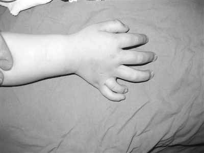 胡先生與妻子回憶,雙方家庭里都不曾出現(xiàn)過六指人;如排除遺傳因素,他懷疑與妻子孕期感冒時(shí)曾吃過抗生素藥物有關(guān)。(記者 周曄 通訊員 姜甦 趙晶晶)