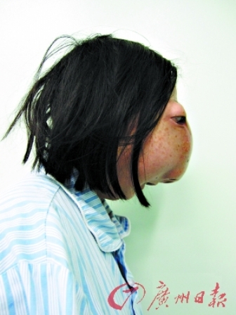 “活檢結果還沒出來,基本確定是‘骨纖維異常增殖癥’,其實也就是她的顱腦內(nèi)、頜面部有著巨大腫瘤。”廖貴清教授表示,她的腫瘤與頭部等大,雖然呈良性無礙生命,但嚴重影響其生活。