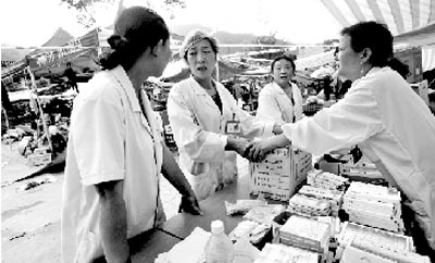 于波是東方通用航空公司的后勤人員,大地震三天后,他就從天津被派往四川,成為最早一批乘民用直升機(jī)前往災(zāi)區(qū)的救援者。昨天下午3點(diǎn)半,飛機(jī)抵達(dá)禹里,那些受傷的老鄉(xiāng)遠(yuǎn)遠(yuǎn)地就聚攏過(guò)來(lái)。飛機(jī)剛停穩(wěn),一名解放軍就抱著一個(gè)10歲的男孩遞給于波。于波抱著男孩剛要登上舷梯,后背被人一把拉住,護(hù)士杜娟指著孩子搖搖手:“你們不能上!庇诓ㄒ粫r(shí)有點(diǎn)發(fā)怔,杜娟指了指地上躺在床板上的重傷者。