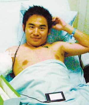 21日凌晨麻醉劑的藥效過去后,廖波疼痛難忍,為了不影響同室兩名病友休息,他咬著毛巾和筷子堅(jiān)持著,最后把一雙筷子都咬斷了也沒呻吟一聲。目前,他的病情已趨于穩(wěn)定,但可能還需要再次手術(shù)。住院期間,廖波還認(rèn)了一名志愿者做干媽。“她對我特別好,是第一個幫我擦身子、換衣服的人。”廖波喊出“媽”的時候,志愿者頓時泣不成聲,把廖波擁在了懷里。