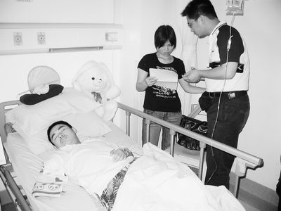 昨(2)日,記者來到位于成都的四川大學華西醫(yī)院,向“可樂男孩”薛梟轉(zhuǎn)交全國網(wǎng)友鼓勵信件。主治醫(yī)生項舟教授說,薛梟身體恢復不錯,已可以獨立下床扶著床邊行走。
