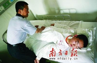 1994年,從兒子在卡車上摔下癱瘓那一天起,黑龍江伊春市湯旺河區(qū)二清河林場的丁國福就開始了漫長的奔波。為了讓兒子早日站起來,丁國福不惜傾家蕩產(chǎn),甚至當乞丐。昨日,人稱“丁百萬”的丁國福帶著兒子來到廣州解放軍四二一醫(yī)院求醫(yī)。