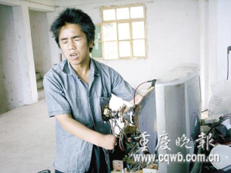 他是盲人,而且右手只有手掌,沒上過一天學,但他卻通過“摸索”,能夠修理結構復雜、帶電的電視。