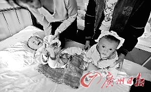 兩個“腎結石”寶寶正在醫(yī)院接受治療。