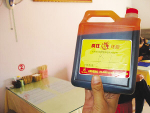 “我們是正規(guī)加盟店!眻(zhí)法人員來到位于桂林路附近的一家變態(tài)烤翅店,經理拿出所有的開店和加盟手續(xù),稱他們手續(xù)齊全。執(zhí)法人員讓該經理拿出了制作變態(tài)烤翅的調料——“BT油”,他拿出了一個5升的小白桶。該經理說,他們加盟的時候,北京總店就給他們提供這種調料,總店稱是“商業(yè)秘密”,從來沒透露過是什么制成的。他們也用其他調料代替過,但做出來的雞翅都不如用“BT油”做的好吃。