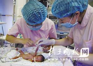 記者昨天上午來到淮安市婦幼保健院新生兒科時(shí),只見在醫(yī)護(hù)人員的幫助下,冉冉的母親閔曉元正在用奶瓶給她喂奶,記者注意到冉冉的脖子上有一個(gè)銀制長命鎖。閔曉元笑著告訴記者:“這是我們特意為女兒買的,希望她長命百歲。冉冉這個(gè)名字也是慶賀她重獲新生的,但愿她的以后就像早晨的太陽一樣冉冉升起”。站在一旁的父親劉峰望著這個(gè)來之不易的女兒則百感交集。據(jù)其介紹,他與妻子婚后一直沒有小孩,去年年底在南京做了“人工助孕”手術(shù)后,妻子懷孕第24周時(shí)于今年5月30日在盱眙縣某醫(yī)院產(chǎn)下一對(duì)試管雙胞胎女嬰。由于這對(duì)雙胞胎嚴(yán)重早產(chǎn),在醫(yī)學(xué)上稱之為極不成熟兒,小女兒剛出生就不幸夭折,體重只有800克的大女兒生命體征也不穩(wěn)定,于是連夜轉(zhuǎn)至淮安市婦幼保健院進(jìn)行搶救治療。他告訴記者,他們當(dāng)時(shí)真的以為女兒根本沒有存活的希望,是醫(yī)院救了他女兒。前幾天醫(yī)院通知他昨天女兒可以出院時(shí),他就在盱眙縣城一飯店訂了20桌酒席,宴請(qǐng)所有親朋好友于昨天中午一起熱鬧熱鬧慶賀女兒出院,F(xiàn)在飯店的客人都催他好幾遍了,讓他趕快將寶貝女兒帶回盱眙。他說:“醫(yī)院就是我們的恩人,現(xiàn)在還欠醫(yī)院7萬元治療費(fèi),我們一定慢慢還”。