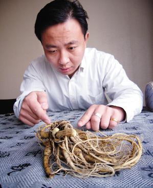 記者看到,這棵參的根須部分是卷成一團(tuán)的,在主根旁還長著四根較粗的根,這些根上還有許多細(xì)長的須,顏色為土黃色。以團(tuán)狀出現(xiàn)的山參長約20厘米,寬約10厘米,根須上有一些小疙瘩狀的小結(jié)。李先生說,就為了鑒定這棵山參的價(jià)值,幾天前他們特意來到北京。他們曾拿著山參的照片來到北京一個(gè)知名藥堂,藥堂里的一位藥材專家告訴他們這棵參至少有百歲高齡,幾個(gè)較粗的根莖可以稱為“四世同堂”,可以說十分罕見,這讓他們對山參的價(jià)值信心倍增。