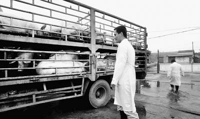 在廣州,調(diào)入生豬時,需要有生豬產(chǎn)地農(nóng)業(yè)主管部門出具的檢驗報告書;到了交易市場,需要接受動物檢疫部門的抽檢;在肉聯(lián)廠或者屠宰廠,工作人員要提取尿樣檢測,主管單位則是質(zhì)檢和工商部門;市場上豬肉的檢測,則由動物檢疫部門負責。