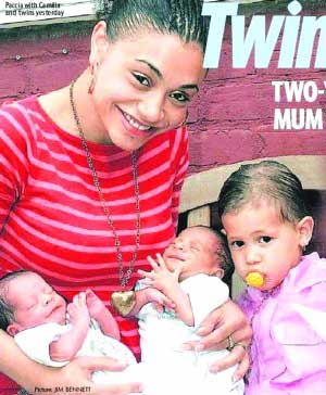 卡米拉·薩姆斯是英國東南倫敦利爾市人,她和27歲的男友馬克·康威以及兩歲女兒帕西婭·納特生活在一起,卡米拉的腹中懷有一對雙胞胎,預(yù)產(chǎn)期是今年6月底。然而一周前,卡米拉突然在家中發(fā)生了早產(chǎn)?桌貞浾f:“我本來在床上睡覺,但卻在凌晨3點(diǎn)醒了過來,我感到非常不舒服。于是吃了一顆撲熱息痛,但卻感到更加不舒服了!27歲的馬克趕緊打電話喊救護(hù)車,但卡米拉腹中的雙胞胎嬰兒卻已經(jīng)迫不及待地想要降臨人世。