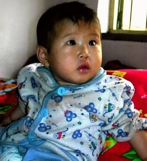 10月21日,記者冒雨與衡水復明眼科醫(yī)院的醫(yī)護人員一行來到了故城縣武官寨鎮(zhèn)叩莊村,小田盈的爺爺、奶奶早就等在門口了。小田盈在爸爸的懷里起勁地吮吸著奶瓶。記者看到田盈的上嘴唇左部一直到左鼻孔有一道長長的疤痕。右前臂明顯彎曲,摸上去有硬塊。俗話說“三翻六坐八爬爬”,目前小田盈都9個半月了,別說爬了,連坐都坐不起來。
