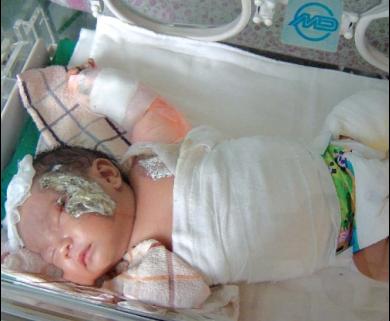 孝感一名出生僅20天的男嬰因感冒住進(jìn)了當(dāng)?shù)刈詈玫闹行尼t(yī)院,由于醫(yī)院規(guī)定出生28天內(nèi)的新生兒均由專業(yè)的醫(yī)護(hù)人員24小時全程監(jiān)護(hù),家人不得陪同,家人將寶寶放心托付給了醫(yī)院。不料4天后,醫(yī)院護(hù)士為孩子洗澡時,因臨時有事離開,孩子在暖氣片上被燒成重傷。年輕的媽媽擔(dān)心,寶寶還要經(jīng)歷一系列手術(shù),多個關(guān)節(jié)部位將可能終身殘疾,被燒傷的面部可能嚴(yán)重毀容,直到昨日,一家人仍深陷悲痛之中。