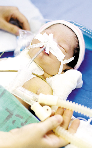 胸科醫(yī)院副院長劉建實教授表示,這例手術(shù)最大的難度就在于孩子太小,出生僅僅28小時,心臟僅僅有核桃大小,冠狀動脈也僅僅有1.5毫米粗細。因此為確保手術(shù)成功,胸科醫(yī)院做了充分的準備,包括高倍放大鏡、比頭發(fā)絲還要細的縫線、最小號的呼吸機等。由于秋秋的心臟太小,手術(shù)幾乎全靠器械完成。經(jīng)過9小時的手術(shù),9月10日晚上11點手術(shù)順利完成,秋秋終于“修心”成功,進入重癥監(jiān)護室進行術(shù)后觀察。經(jīng)過一天的觀察,昨天秋秋的情況已經(jīng)基本穩(wěn)定,手術(shù)十分成功。
