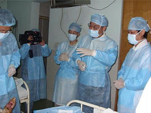 徐榮祥教授在醫(yī)院進(jìn)行臨床指導(dǎo)。