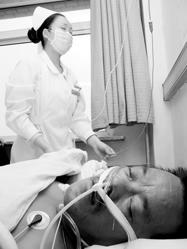 1日夜里,患者病情突然加重,醫(yī)護(hù)人員立即投入緊急搶救,再次將瀕危的患者從死亡線上拉回來。不久,患者出現(xiàn)精神躁動,意識混亂的他竟掙脫護(hù)士的雙手,自己拔掉輸液管,生命監(jiān)護(hù)儀上,他的血壓、心跳再次異!