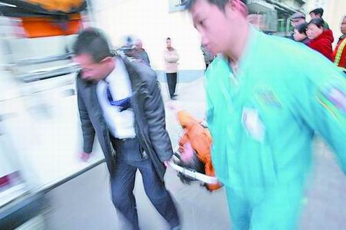 昨天下午5時20分,記者趕到桐柏南路227號院時,正趕上急救人員抬著一名嘔吐不止的女子上救護(hù)車。女子大聲哭喊著,不時用手抓著胸口。在院內(nèi)1號樓4單元門口,5名醫(yī)護(hù)人員正在搶救一名躺在地上的婦女。此時,心電圖的顯示器上,已經(jīng)是一條直線。據(jù)住在4單元一樓西戶的張老太太介紹,下午1時許,他們請了兩名三鼎家政公司的女保潔員到家里打掃衛(wèi)生。兩人一開始都在廚房里打掃,到了下午4時50分,其中一個比較年輕的讓另一個人去打掃廁所。此人到廁所里后,拿出一個藍(lán)色的塑料瓶,把里面的液體倒進(jìn)便池中開始清刷,不到兩分鐘,她就喊著“我受不了啦”從廁所里跑了出來,然后拉開房門就跑到了外面。等較年輕的女保潔員跑出去后,她已經(jīng)癱倒在地上,大口大口地喘氣。幾分鐘后120趕到,她已不會動了。