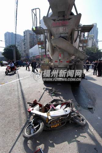 24日上午11時(shí)左右,在廣達(dá)路與安南路路口匯多利建材市場(chǎng)旁,一名女子騎電動(dòng)車(chē)由北朝南行駛時(shí),被朝西拐彎的一輛水泥攪拌車(chē)卷入車(chē)底當(dāng)場(chǎng)死亡,現(xiàn)場(chǎng)慘不忍睹。由于事故路口沒(méi)有安裝紅綠燈,附近出入的學(xué)生比較多,市民建議相關(guān)部門(mén)盡快安裝紅綠燈。